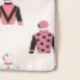 Beautiful pink and white patterned scarf featuring rows of colourful jockey silk illustrations. Great fun to wear to the horse races.