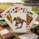 Horse racing is such a wonderful sport to watch as these magnificent animals race around the track. Now this design is of a horse racing and it looks superb. The horse is racing along with the jockey crouched down on it’s back. This horse racing design looks great on these playing cards. Perfect for yourself or as a gift