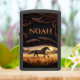 A brown horse runs through a field of tall grass at sunset, with a wooden sign with the name Noah in the foreground.