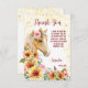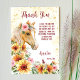 Palomino horse with sunflowers and pink flowers floral girls birthday party thank you cards template. Beautiful watercolor horse portrait, nice for horse loving people.