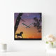 A stunning, vibrant clock featuring a horse and an oak tree set against a southwestern sunset. Both attractive and practical.