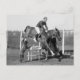 Horse and rider jumping a table framed by a dog and a seated horse. Horse trick riding at Ft. Myer, Virginia, a U.S. Army post adjacent to Arlington National Cemetery, in 1929.