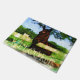 A painting of a friendly horse seeming to be greeting you over the fence and saying " Welcome ".