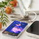 A vibrant blue, white. and pink colored keychain, displaying a modern horse pattern design. Horse lovers everywhere will love it. Both sides have text areas for customization. Special gift for horse owners and riders.