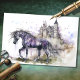 Unleash the magic with this exquisite decoupage paper! Behold the mesmerizing watercolor-inspired horse adorned in captivating purple accents. Embrace the enchanting look of the castle, and let your creativity soar into a realm of limitless possibilities!