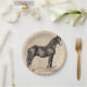 A vintage country and western themed horse with script paper background design with old fashioned illustrated art!