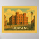 Commemorate Horsens, Denmark with this charming vintage-inspired illustration. Featuring the city's scenic harbor, boats, and a sun-drenched sky, this design is perfect for travelers, Danes, and lovers of coastal European landscapes.