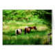 Welsh ponies grazing in a summer meadow. Watercolor.
