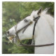A watercolour design of a beautiful white horse impatiently waiting to gallop.
