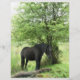 A beautiful black mare resting in the shade of a tree. Watercolor. Wales UK.