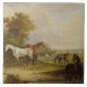 Horses Grazing: A Grey Stallion grazing with Mares Ceramic Tile