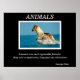 A majestic horse with a flowing mane gallops playfully through bright blue water, its powerful movements creating splashes that catch the sunlight. The clear sky above enhances the vibrant color of the ocean, creating a scene of pure joy and freedom. The image is framed elegantly with a simple white border, and the word "ANIMALS" appears in bold text at the top. The overall mood is energetic and joyful, capturing the untamed spirit of nature Animals are such agreeable friends- they ask no questions, they pass no criticisms. -George Elliot