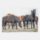 A photographic design of a herd of horses waiting to be fed.