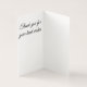 The product quality is great, just much, much smaller than I anticipated. I do not remember seeing a size explanation and assumed for a thank you card this would be a standard size. It was much to small to send out alone, so I ended up putting them in larger thank you cards so not to waste them, because they were very cute! Printing was standard dazzle quality, great!