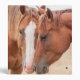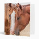 Two chestnut horses sharing a tender moment in a pasture. These two chestnut horses can be seen gently nuzzling each other, showing love. Great for horse lovers.