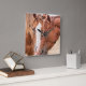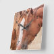 Horses nuzzling in a pasture square wall clock