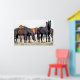 A photographic design of a herd of horses waiting to be fed.