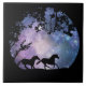 Two horses running in a surreal moon with leaves from an oak tree. A pretty fantasy horse art tile.