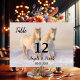 Wedding table number card featuring two horses running happily in the snow. Beautiful for a winter wedding celebration for horse lovers.