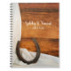 Customize the charming and elegant Horseshoe and Satin Country Wedding Spiral Notebook with the personal names of the bride and groom and marriage ceremony date create a unique casual yet classy guest book or advice book for the newlyweds. This rustic chic customized equine theme nuptial note book features a quaint digitally enhanced photograph of a rusty horseshoe and white satin with a brown weathered barn wood background. Perfect inspo for your informal ranch style barn party marriage ceremony and reception.
