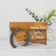 Say thanks after an informal yet elegant engagement party, bridal shower or marriage with the enchanting Horseshoe and Bridal Veil Western Wedding Flat Thank You Note. These casual and classy custom country chic ranch theme thank you notes feature a quaint photograph of a rusty horseshoe and a white bridal veil and a rustic weathered brown barn wood background. Perfect inspo for your relaxed farm style barn party celebration event.