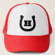Horseshoe monogram logo trucker hat. Personalize with text, lucky number or monogram. Black or custom color. Great for farm or ranch owner that keeps horses.
