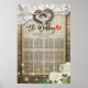 Rustic Country Style 12 Tables Wedding Seating Chart Poster Templates - Couple Old Horseshoe Heart with Rope Bow Knot and White Lace, Hydrangea Flower, String Lights and Burlap Cloth on Old Barn Wood Background.