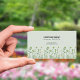 A simple business card with a light green color with small green and yellow flowers. It could be suitable for activities such as horticulture, garden design, landscaping, floriculture, arboriculture, florist, but also as brand design.