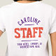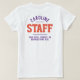 Staff t-shirt for a hospitality company. Printed Both Sides Hospitality Staff T-Shirt. Add the name of the Staff Member to create a personal company shirt for your employees to wear when with guests. Great hospitality business t-shirt.