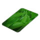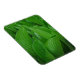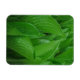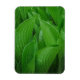 Lovely flexible magnet features a nature photograph of young hostas starting to unfurl. The new green leaves are covered with raindrops. The veins in the plant leaves appear as pale green stripes that follow the curves of the leaves.