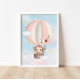Add a touch of warmth and softness to your little one's nursery, bedroom, or playroom with this adorable baby monkey soaring through the clouds in a pink hot air balloon poster. This watercolor art will bring life to any room!