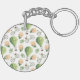 This girly personalized keychain features a romantic green and peach vintage bicycle, rose and hot air balloon pattern.
