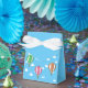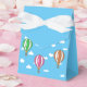 Colorful Hot Air Balloon Favor Box. Blue light sky with little clouds and 6 differently colored hot air balloons is a perfect gift for anyone who likes being in the air and traveling throughout the sky.