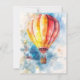A vibrant hot air balloon soars through a dreamy sky filled with soft blues and splashes of color, providing a sense of adventure and tranquility. The basket hangs below, with two figures looking out at the expansive view.