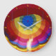 Reds, yellows, purples and blues on the inside of a balloon canopy make one fantastically pretty clock/watch/timepiece!