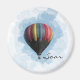 The pretty Hot Air Balloon Magnet features a digitally enhanced photograph of a colorful hot air balloon soaring into a clear blue sky. This custom ballooning themed round magnet makes a unique and motivational gift for a recent graduate, job promotion or ballooner.