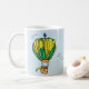 Hot air balloon takes off with cat and dog. Balloon is "Patience"