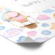A baby shower welcome poster with a cute and whimsical pattern. Hot air balloons and cute clouds with faces among stars and hearts and balloons. Soft pastel colors make up this adorable design. A white square layered over top with your text inside.