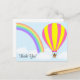 A postcard with a hot-air balloon, a rainbow and a 'Thank You!' text, on a light blue background. Customize the postcard with your own text, background color, among other options.