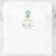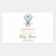 The cute baby shower invitation features a hot air balloon with a teddy bear, bird, and clouds.