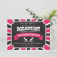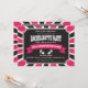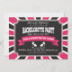 A bachelorette party invitation with a WOW factor. This trendy invitation features a hot pink, black and white ray-border with a decorative black center panel for your party information. The words "bachelorette party" are pre-printed and embellished with a pair of high heels, a banner and squiggle dividers. The back provides lots of space if you wish to add more details. (Vecteezy bachelorette party invitation by carterart). The card is easy to customize with your wording, font, font color, paper shape options and choice of six paper types.