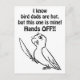 Funny bird quote saying: "I know bird dads are hot, but this one is mine! Hands OFF!!" with a lovebird cute cartoon drawing on the bottom. Perfect gift for crazy bird dads, bird daddies and bird lovers.
