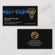 A blue electrical pulse streaks across the darkness and lights up a gold "bulb home". You are that electrician that brings light into homes. Directly below the bulb is a slogan option to publicize your service ; Change the caption remarks to the slogan to suit your own needs. Your prestigious name, job title and the contact details are located to the left side of the card.
