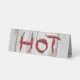 The word "HOT" spelled in hot, red cayenne chili peppers