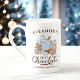 Hot Chocolate and gingerbread cookies modern blue Christmas movie bone China mug with a name. Easily personalize the text or leave it blank. ''Hot chocolate'' and ''Baby it's cold outside'' texts are part of the design, so they are permanent. - Kate Eden Art