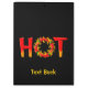 Hot with the letter O made of a flame circle with chili peppers.
