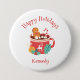 This festive and heartwarming button features a smiling gingerbread cookie relaxing in a red cup of hot chocolate, paired with the cheerful greeting “Happy Holidays.” Set in a cozy holiday theme with warm tones and whimsical charm, this design can be customized with your name or a loved one’s—making it perfect for gifting, holiday cheer, or personalized seasonal fun.