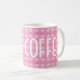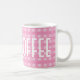 A comfort beverage in a mug with the fabric that endures forever, gingham.