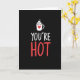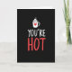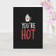 This card features a deep black background that makes a cozy white mug stand out at the top, marked with a red heart that feels like a quiet little wink ❤️. The mug is filled with a swirl of whipped cream dusted with tiny red sprinkles, and thin curls of steam rise to suggest warmth meant to be shared 🥰. Just below the illustration, the text is stacked on two lines, with “YOU’RE” placed first in bright white letters. Under it, “HOT” appears in strong red, mirroring the heart on the mug and turning the compliment into a flirty, friendly tease. The simple palette of black, white, and red keeps the focus on the tender, inviting pairing of the mug and message, like offering someone a comforting drink and a grin at the same time. The layout guides your eye from the steamy cup down to the centered words, leaving plenty of open space around them for contrast. At the top, the white mug with its red heart sits above the two-line phrase, with “YOU’RE” in white and “HOT” in red against the black field.