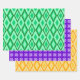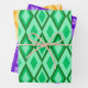 A Colorful Geometric Patterned Wrapping Paper Sheet Set In Green, Yellow And Purple